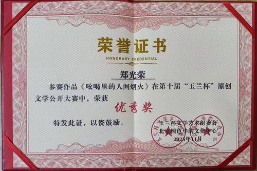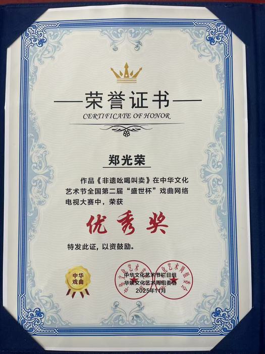 来源:中国众识网-非遗 当市井吆喝的烟火余韵邂逅文学创作的笔底波澜,当非遗传承的坚守之志融合多元艺术的创新之思,中国非遗传承人数据库认证传承者、中国非遗人才库收录专家、中国非物质文化遗产记录工程参与者、中华优秀传统文化传承发展工程践行者、非遗文化遗产国际研究院研究员、非物质文化遗产促进会理事、新时代非物质文化遗产传承人郑光荣,以第十届“玉兰杯”原创文学公开大赛优秀奖为新起点,在非遗传承、艺术跨界与文化传播的赛道上,书写出身份多元、荣誉满缀的文化答卷。 一纸证书的非遗重量:文学创作与国家级工程的深度耦合2025年11月,玉兰杯文学艺术组委会、北京国色华韵文化中心联合颁发的荣誉证书,不仅是对《吆喝里的人间烟火》文学价值的肯定,更是对郑光荣作为中国非物质文化遗产记录工程核心成员的专业致敬。这部作品中“磨剪子戗菜刀”的铿锵节奏、“酸梅汤不一味”的婉转腔调,均是他参与国家级非遗记录工程时,在京城胡同、市井集市采集的“活态声学标本”,文字里的民俗温度,源自他对“吆喝叫卖”非遗项目的系统梳理与当代转译。 作为中国非遗传承人数据库认证的“吆喝叫卖”非遗传承人,他的创作严守“非遗记录真实性、传承延续性”准则;身列中国非遗人才库,更让其文学实践成为行业标杆。北京国色华韵文化中心评价道:“郑光荣的作品是‘非遗文学化表达’的典范,让无形的文化记忆在文字中具象可感。” 多维绽放:春晚多频道播出+法治传播双轨 郑光荣的文化实践始终跨越维度,兼具传播力与社会价值。在春晚舞台上,他的非遗吆喝节目实现多频道、全时段覆盖:2024年春节期间,《吆喝十三香》《胡同叫卖声》等作品于BRTV北京广播电视台文艺频道黄金档(19:30-21:00)、海南卫视非遗专场(20:15-22:30) 同步播出;2025年“爱在天地间”春节晚会中,其跨界表演登陆国学频道 prime time(19:00-20:45) ,并在优酷视频非遗专区上线点播,累计观看量破百万。播出期间,京视网、中国网、非遗中国频道等媒体多次捕捉其表演镜头,专题报道《非遗吆喝唱响春晚,郑光荣让市井声成文化名片》引发广泛关注。 在法治传播领域,他以公众责任担当深耕普法:受邀加盟北京广播电视台BRTV科教频道大型日播普法栏目《民法典通解通读》——北京市“八五”普法规划重点项目,在“剧说民法典”板块演绎“痰迹风波”等真实案例,将公共文明相关法律条文融入生活化剧情;同时参演北京电视台官方普法短剧,在《法治进行时》衍生栏目中塑造多元角色,从邻里纠纷调解到安全常识普及,用通俗表演让法理走进大众生活,相关片段被法治日报客户端、北京普法微信公众号转载推广。 荣誉矩阵:艺术跨界与国际传播的双重突破 国际舞台上,郑光荣的WTTV世界金球媒体网络电视台非遗吆喝叫卖首席顾问身份,成为文化出海枢纽。其编排的非遗吆喝节目通过中国国际教育电视台“汉语文化”频道全球播出,覆盖美国、法国等十余国,联合非物质文化遗产促进会策划的跨文化交流活动,让“冰糖葫芦——酸梅汤”的叫卖调成为中外文化对话的“有声名片”。 艺术跨界领域,他的成就全面开花:2025年,在“星耀傲龄-无界榜样”银龄模特大赛中斩获**“银龄时尚达人”殊荣**,T台风采与即兴吆喝被京视网等媒体争相报道;同年获第五届新农民春晚“最具舞台潜力奖”;2026长寿春晚摘得“紫城金奖”;第七届歌友网K歌大赛获“奥魅力风采奖”;中华文化艺术节全国第二届“盛世杯”戏曲网络电视大赛斩获优秀奖,从T台到赛场、从戏曲到声乐,全方位彰显多元艺术造诣。 组织赋能:行业担当与团体传承的双向奔赴 作为非物质文化遗产促进会理事,郑光荣深度参与非遗行业标准制定,推动“吆喝叫卖”项目分类保护与创新发展;以北京曲协、北京语言文字工作协会、北京乐器学会表演艺术专业委员会三重会员身份,促成吆喝艺术与传统曲艺、器乐、语言文化深度融合,创作出《叫卖十三香》等兼具艺术性与民俗性的作品。 担任北京正明圣达叫卖团团长期间,他带领团队将散落民间的“声景遗产”系统化、档案化,斩获“全国非遗展演金奖”“中华文化艺术节传承创新奖”等团体荣誉;同时获评“和平大使”“优秀形象大使”,2022年担任北京冬奥及冬残奥城市文化志愿者,用文化传播搭建沟通桥梁,相关事迹被中国青年网、北京日报客户端专题报道。 薪火相传:构建非遗传承的新时代生态 手握“玉兰杯”荣誉,郑光荣的非遗征程再启新篇。他将以非遗文化遗产国际研究院研究员身份,推动“吆喝叫卖”纳入“一带一路非遗交流计划”;联合北京国色华韵文化中心发起“玉兰杯·非遗文学创作扶持计划”,助力青年创作者挖掘非遗题材。 在规划中,《吆喝里的人间烟火》只是序章——后续将推出“非遗吆喝三部曲”,系统呈现吆喝文化的历史演变、地域差异与国际传播。从中国非物质文化遗产记录工程参与者到新时代非物质文化遗产传承人,从春晚舞台到国际平台,从文学创作到法治传播,他的每一个身份标签,最终都指向同一愿景:让“吆喝叫卖”这门古老艺术,在多元实践中成为中华民族文化基因里最鲜活的“声音记忆”。 当非遗传承的坚守、文学创作的才情、跨界艺术的突破与文化传播的担当交织,郑光荣用行动诠释了新时代文化人的核
